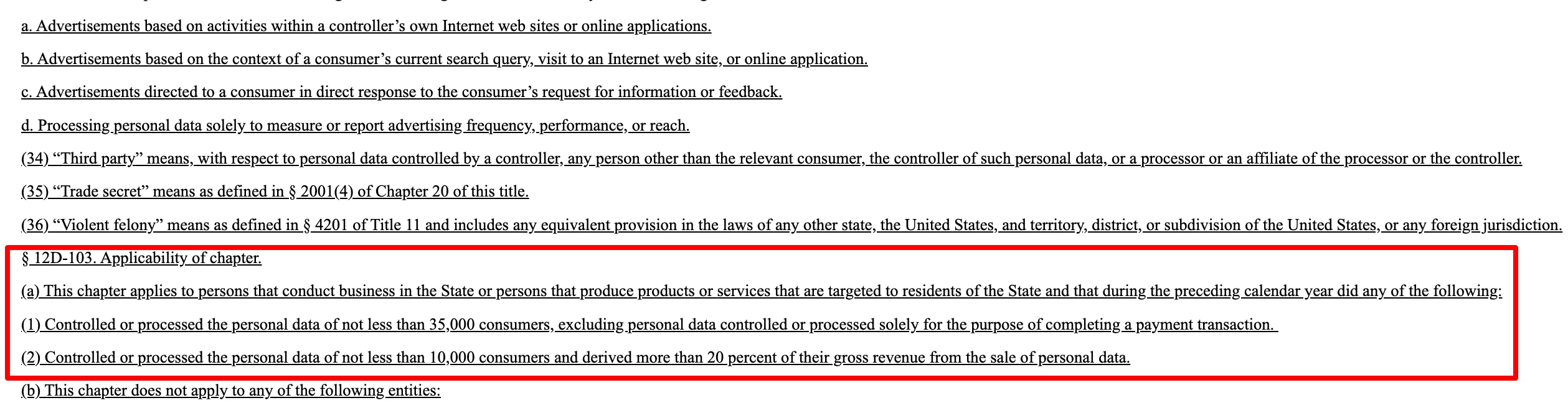 As per Section 12D-103 of the DPDPA, you are required to be in compliance with this legislation.