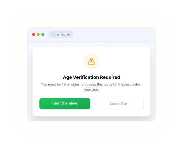 The popup appears to users before they can access your website. Users can select their age from predefined options, and access is granted or denied based on your pre-configured settings.